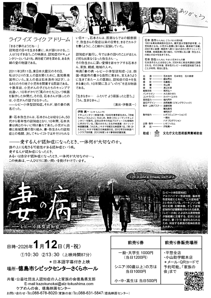 主 催:認知症の人と家族の会徳島県支部・ケアメンあわの会・徳島映画センター